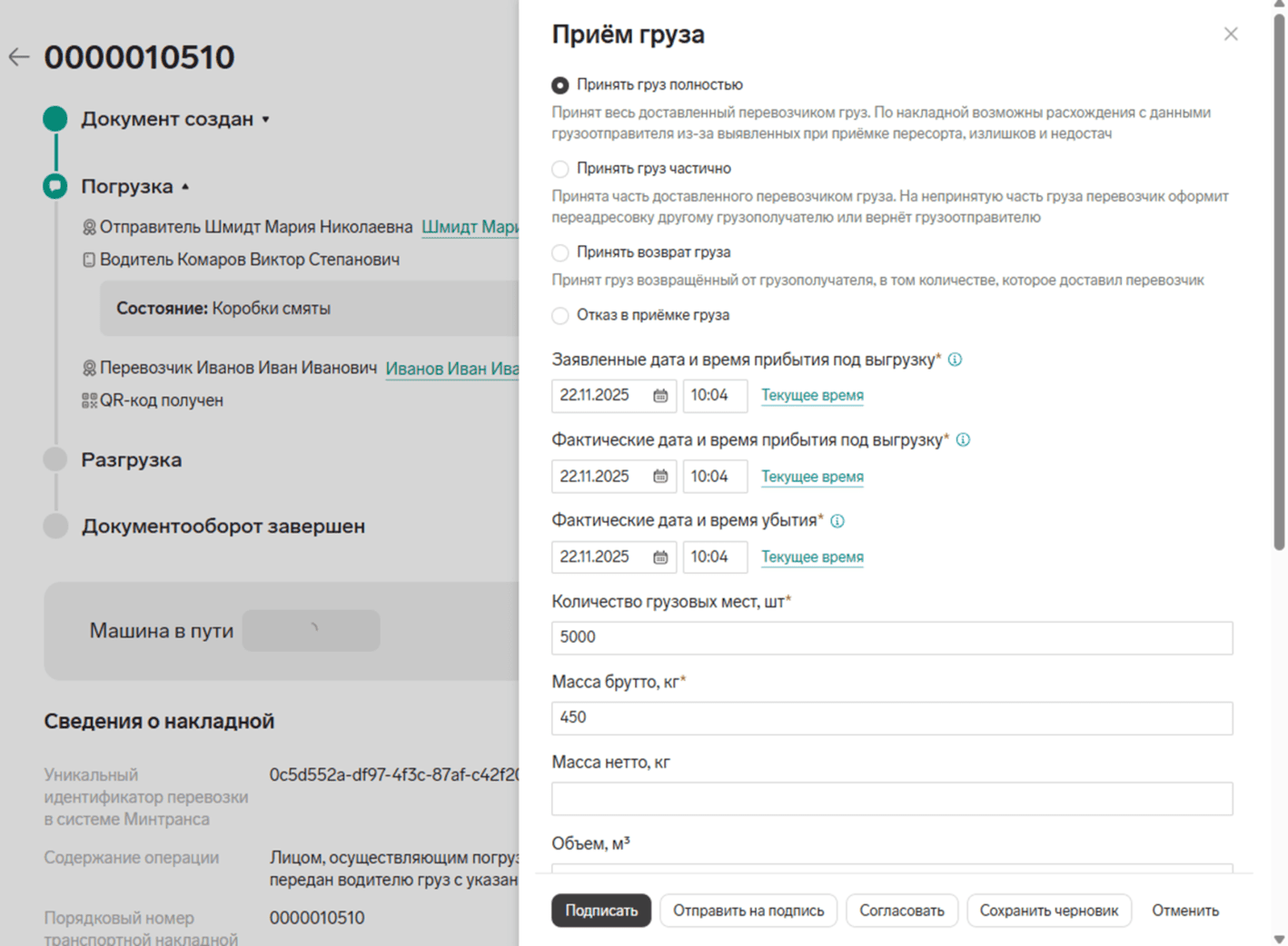 В сервисе Логистика все участники транспортной цепочки видят информацию об этапах перевозки, состоянии груза и статусе документа.